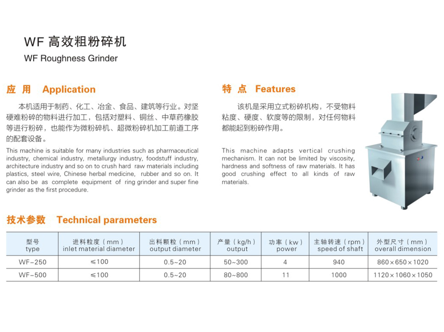 該機適用于制藥、化工、冶金、食品、建筑等行業(yè)。對堅硬難粉碎的物料進行加工,包括對塑料、銅絲、中草藥、橡膠等進行粉碎,也能作為微粉碎機、超微粉碎機加工前道工序的配套設(shè)備。