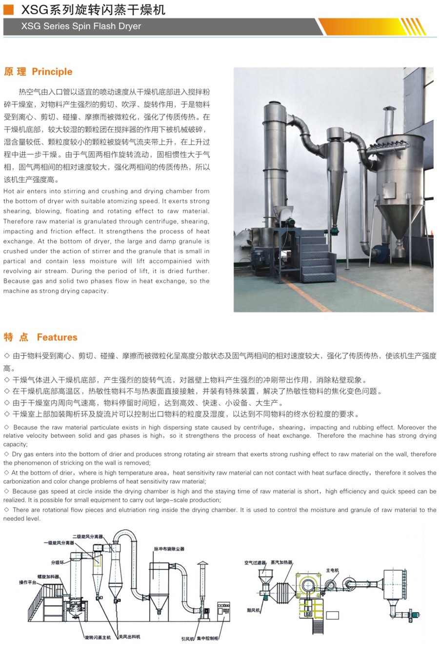 ◆干燥熱敏性物料:由于干燥時間短,物料與熱空氣相對速度大且最熱空氣不與己干物料直接接觸,故可用來處理熱敏性物料。