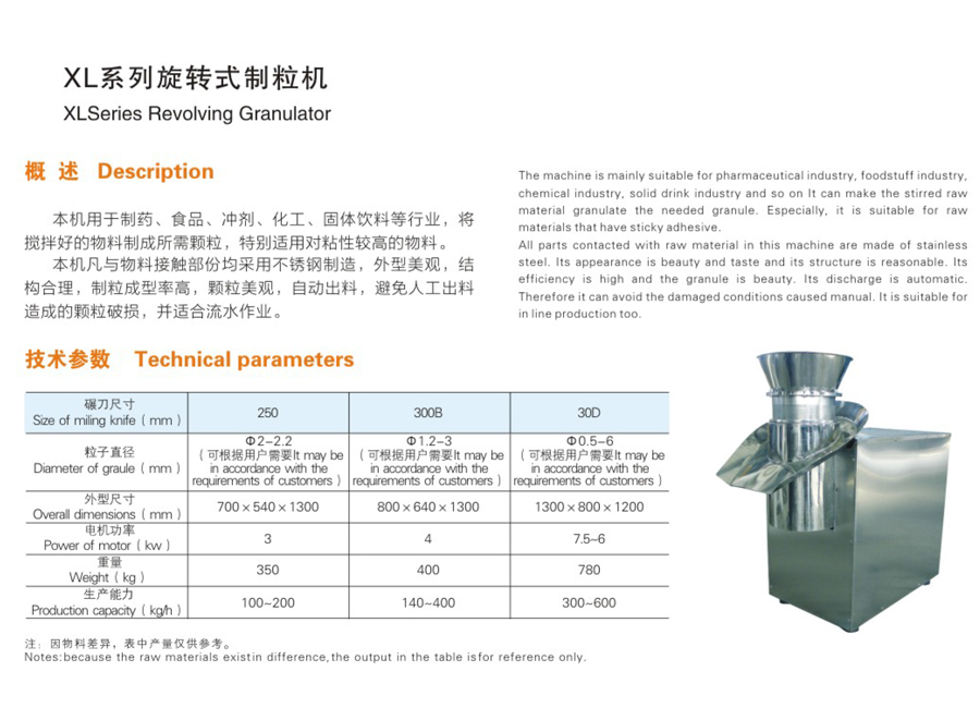 本機凡與物料接觸總價均采用不銹鋼制造,外型美觀,結構合理,制粒成型率高,顆粒美觀,自動出料,避免人工出料千萬顆粒破損,并適合流水作業。
